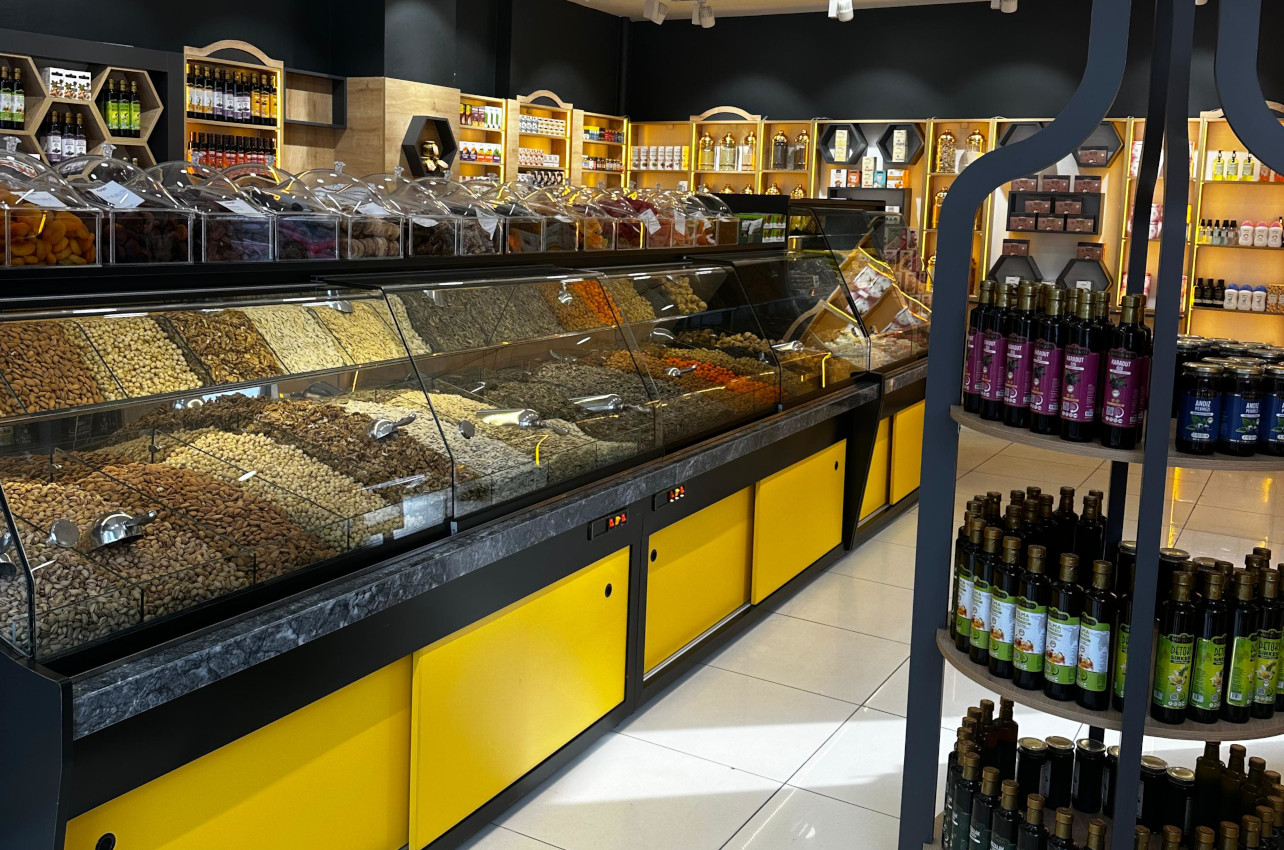 - Dükkanınızı sadece kuruyemişçi olarak açabileceğimiz gibi, isterseniz kuruyemiş&cafe veya bakliyat, baharat, kahve, lokum, aktariye ürünlerinin de olduğu tam donanımlı bir dükkan olarak ta açabiliyoruz,
