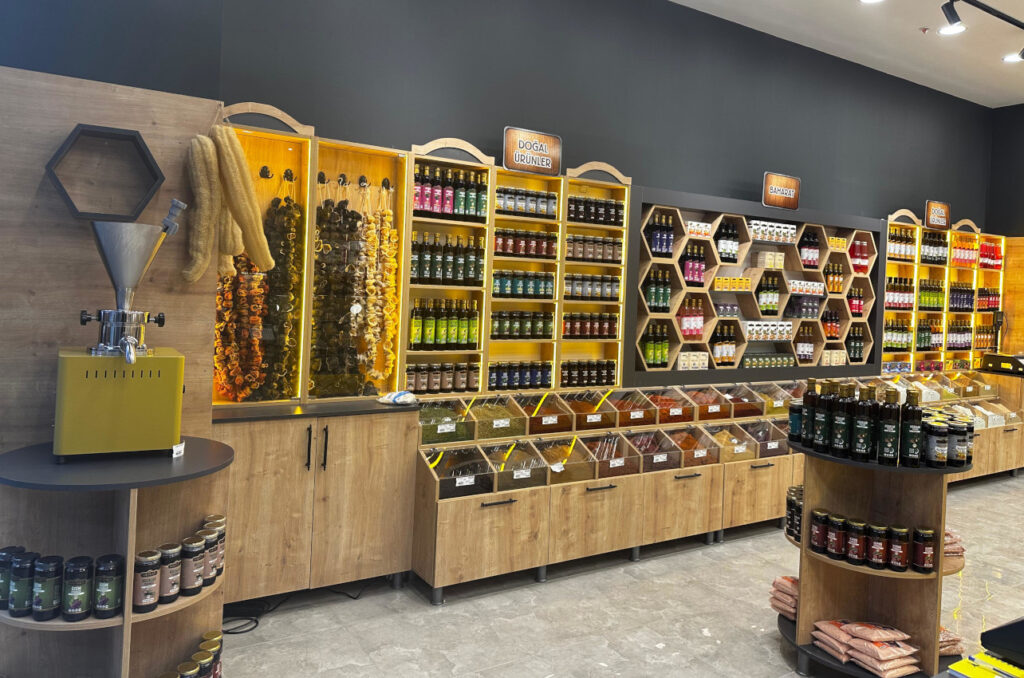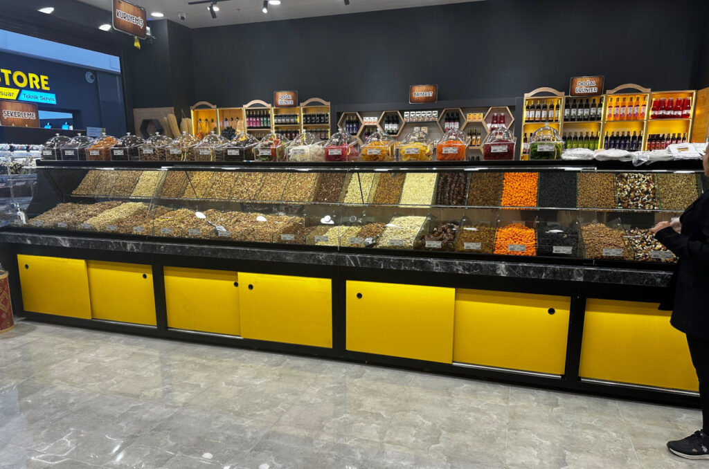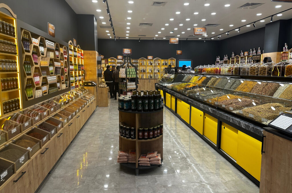 - Dükkanınızı sadece kuruyemişçi olarak açabileceğimiz gibi, isterseniz kuruyemiş&cafe veya bakliyat, baharat, kahve, lokum, aktariye ürünlerinin de olduğu tam donanımlı bir dükkan olarak ta açabiliyoruz,